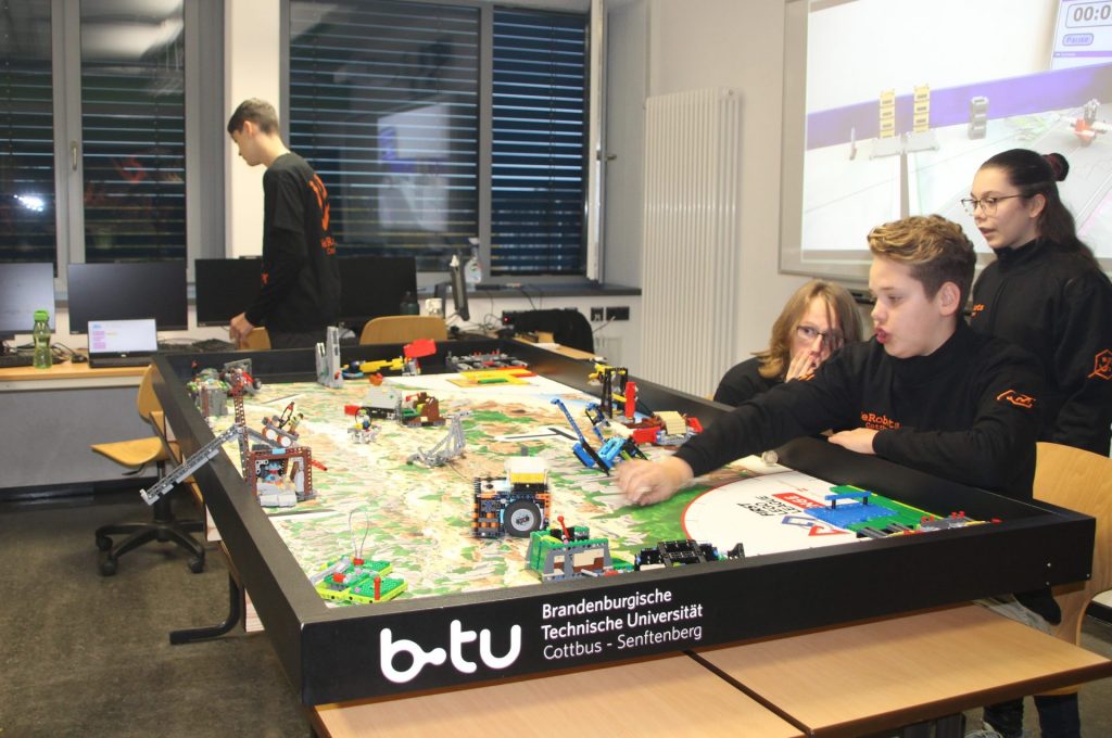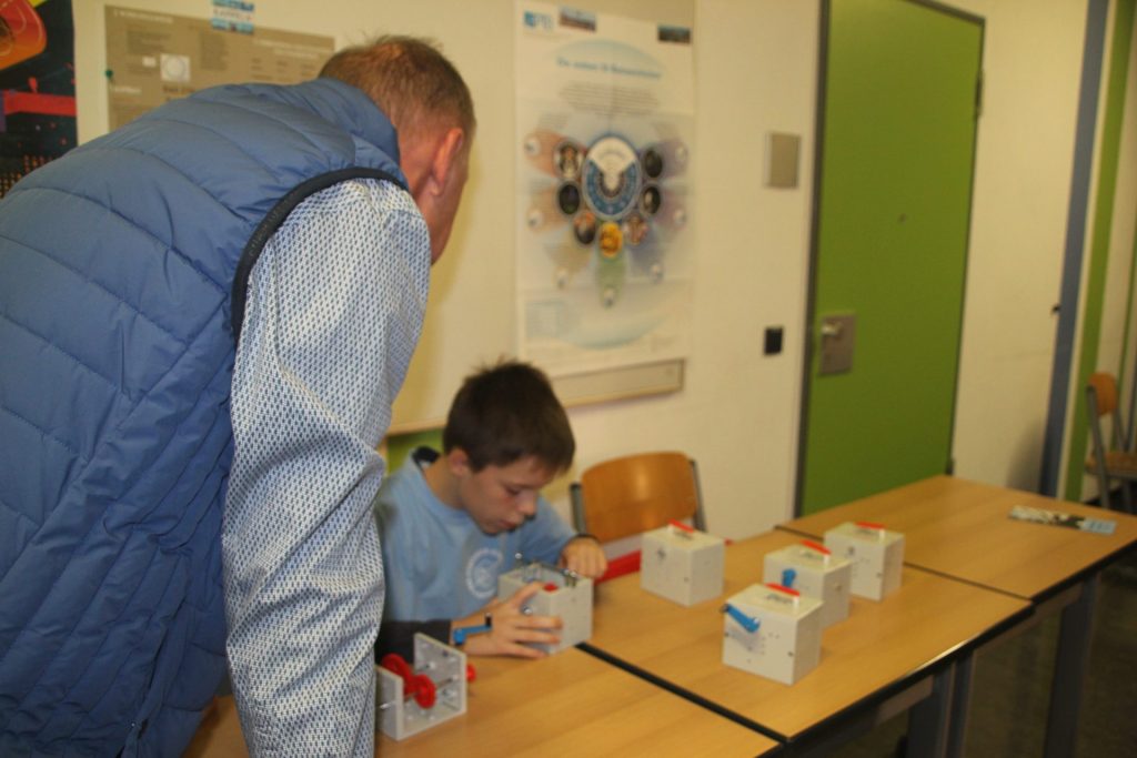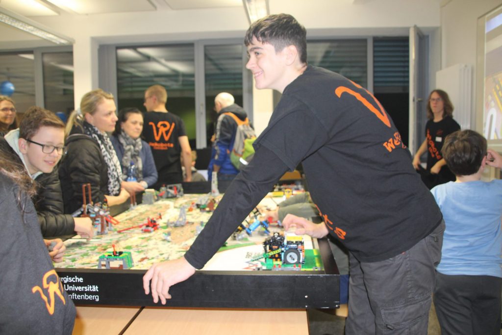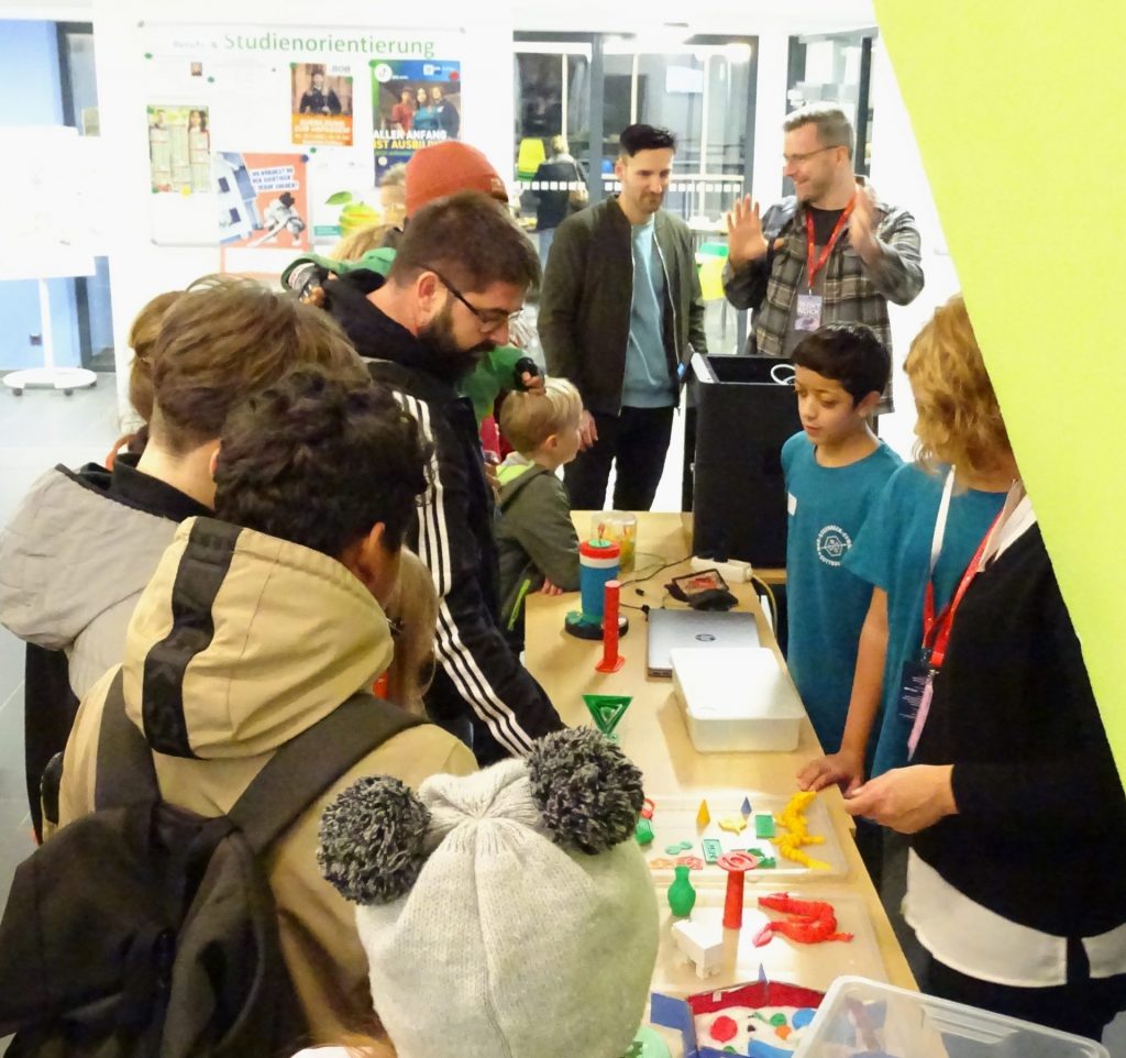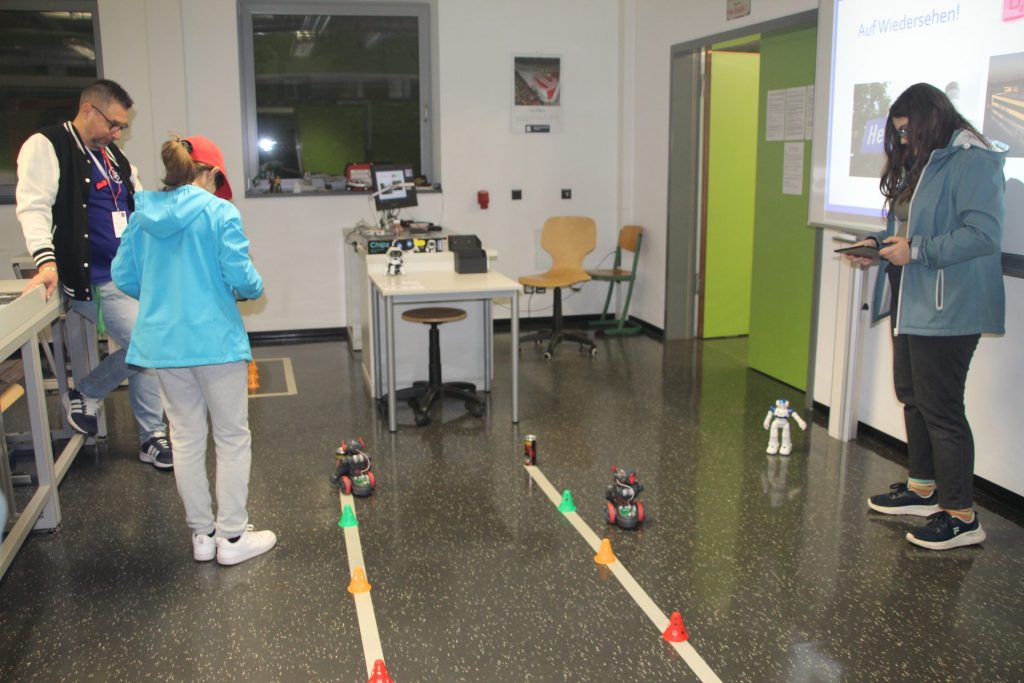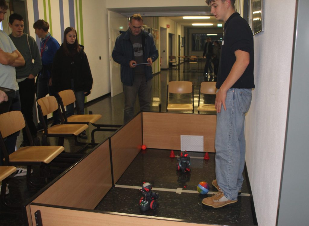 Besonders beliebt war jedoch das Projekt „Roboter im Wettstreit“. Hier hatten Schülerinnen und Schüler kleine Roboter gebaut, die über eine App gesteuert werden konnten. Die Besucher durften selbst Hand anlegen und die Roboter in drei spannenden Spielen gegeneinander antreten lassen – Technik pur zum Mitfiebern!
