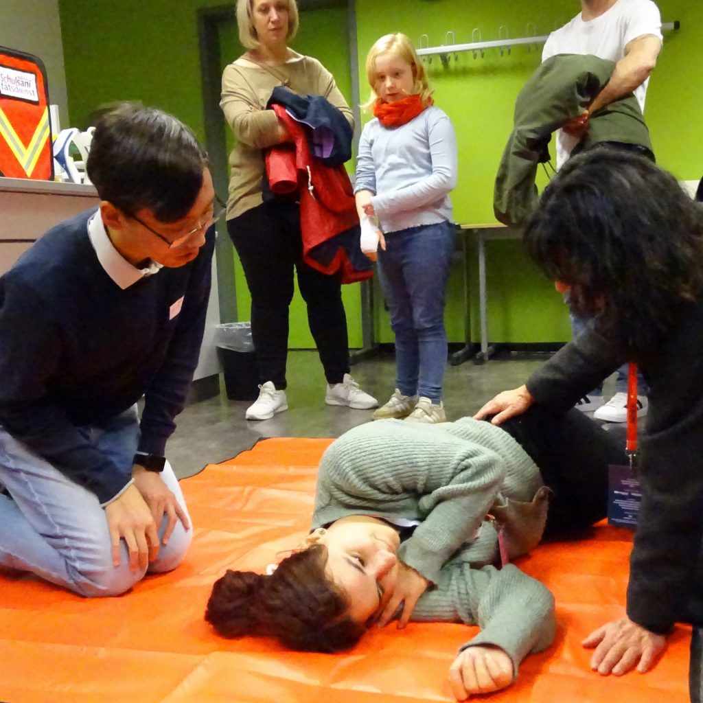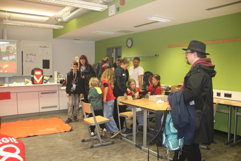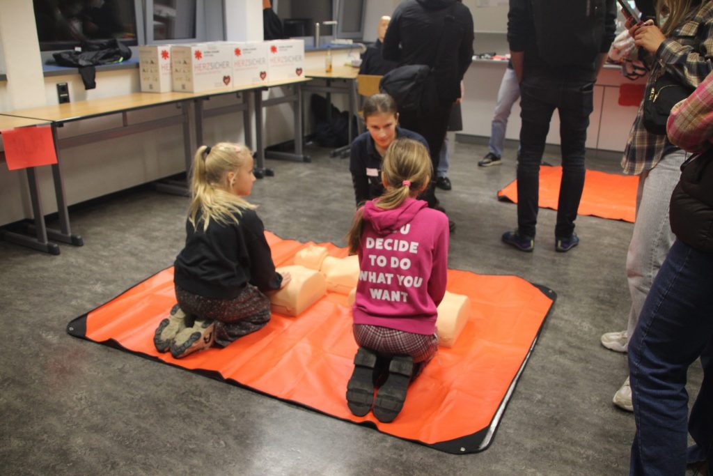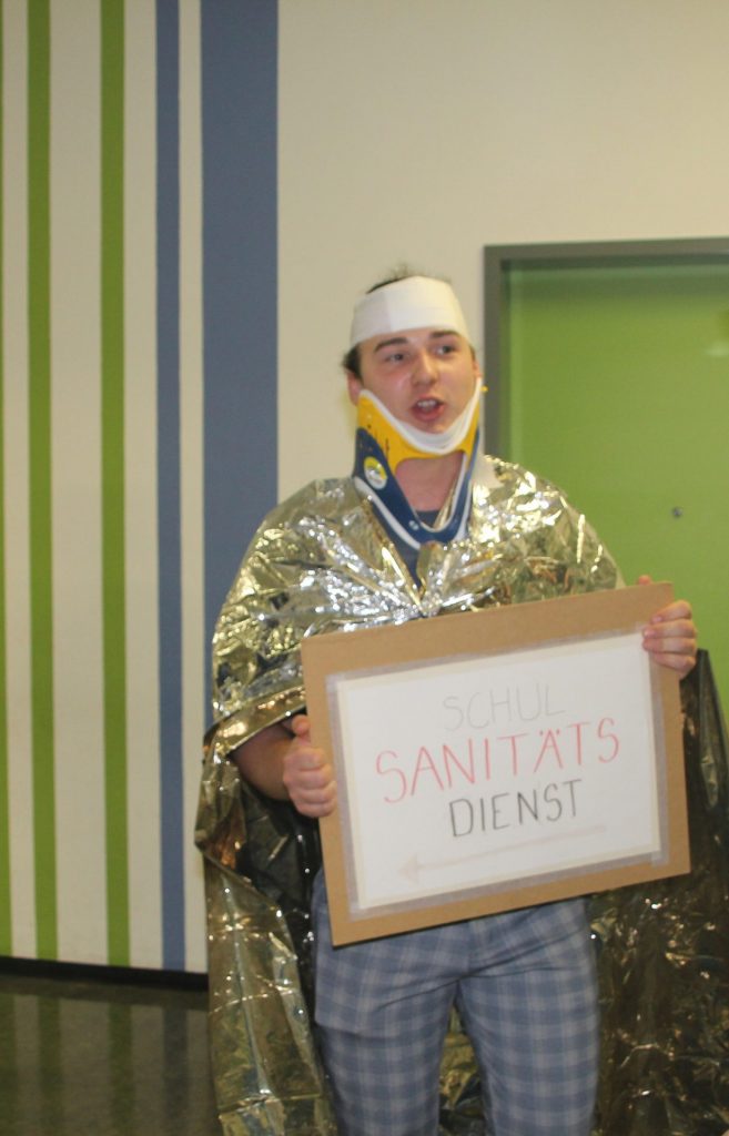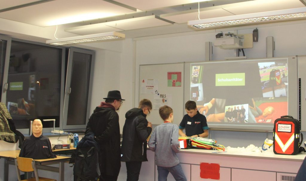 Die Schulsanitäter demonstrierten anschaulich, wie sie bei Unfällen die Erstversorgung durchführen, und gaben den Besuchern dabei einen interessanten Einblick in ihre vielfältigen Aufgaben und Abläufe.