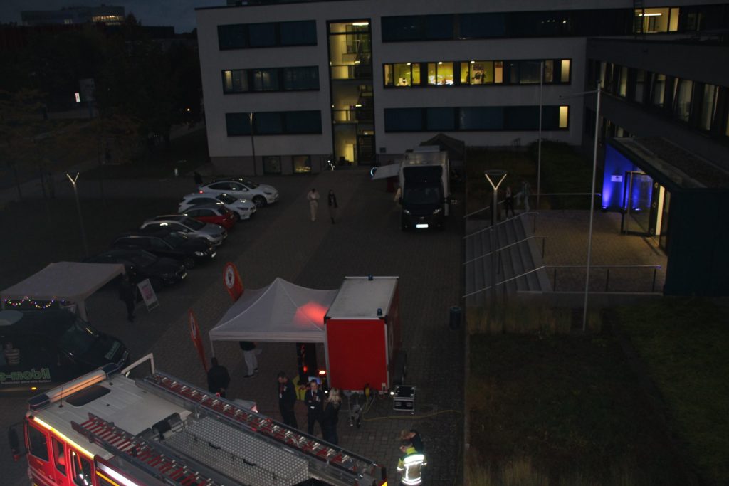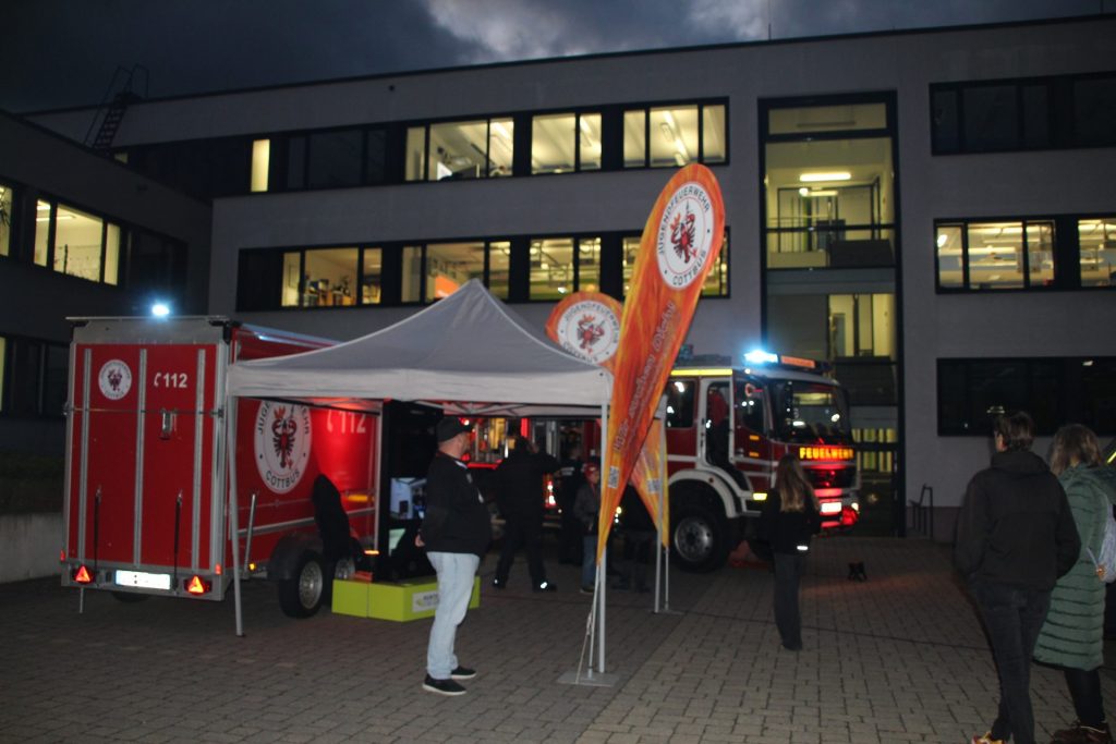 Draußen sorgte die Freiwillige Feuerwehr für Aufsehen. Sie hatte ein beeindruckendes Hilfeleistungslöschfahrzeug (HLF) mitgebracht, das ausgiebig besichtigt werden konnte. Interessierte konnten den Feuerwehrleuten Löcher in den Bauch fragen – und wer wollte, durfte sogar selbst ausprobieren, wie man einen Feuerwehrschlauch richtig ausrollt.
