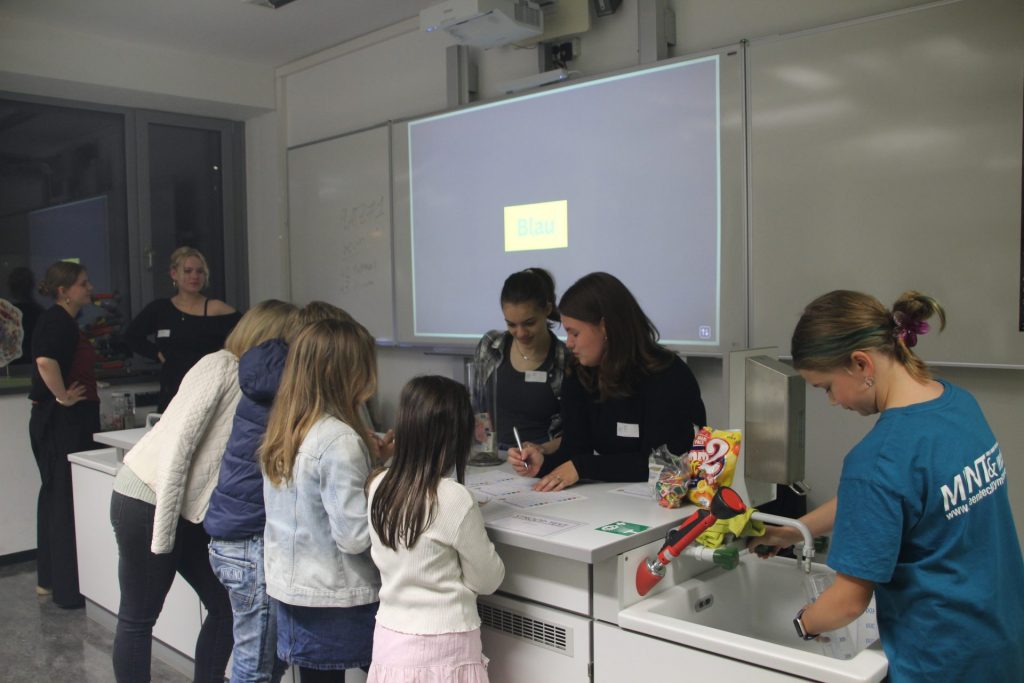 Auch die Chemie zog mit fünf Stationen viele neugierige Gäste an. So wurde beispielsweise mit dem bunten Experiment der Chromatografie eindrucksvoll gezeigt, wie Farben sich trennen lassen – ein echter Hingucker, der nicht nur Kinder faszinierte.