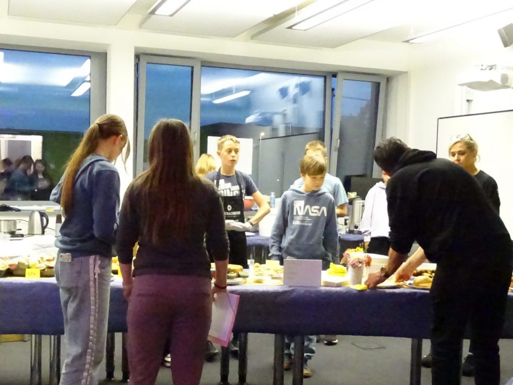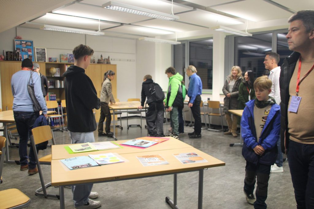 Natürlich durfte auch der Spaß nicht zu kurz kommen: Für musikalische Stimmung sorgte unsere Lehrerband „Lehrgut“, die mit ihren Auftritten viele Besucherinnen und Besucher zum Mitsingen und Mitwippen brachte. Und wer eine kleine Stärkung brauchte, wurde ebenfalls bestens versorgt: Die Klasse 8/1 bot im Konferenzraum herzhafte Snacks, Kuchen und Getränke an, während draußen auf dem Parkplatz ein Foodtruck für zusätzlichen Genuss sorgte.