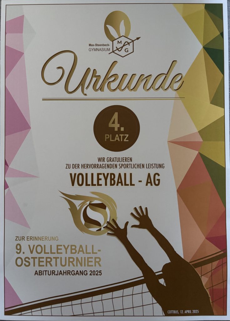 Am 12. April 2025 fand das 9. Volleyball-Osterturnier am MSG statt – ein echtes Highlight für unsere Schulgemeinschaft. Insgesamt sechs Mannschaften aus den Abiturjahrgängen 2018 bis 2024 sowie die Volleyball-AG traten gegeneinander an. Das Turnier war ein tolles sportliches Ereignis, bei dem viele ehemalige Schülerinnen und Schüler unserer Schule wieder zusammenkamen und gemeinsam Spaß hatten.