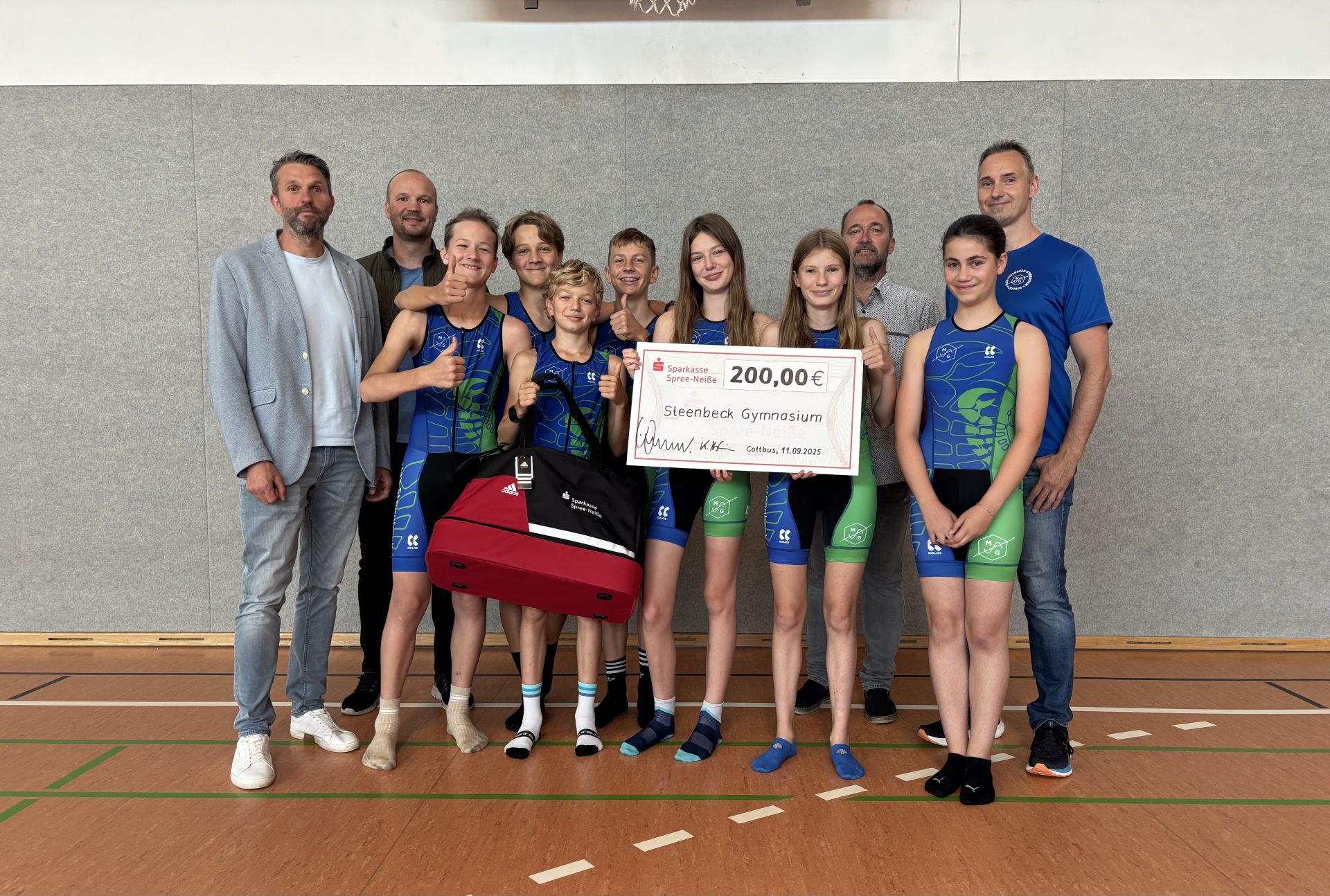 An diesem Donnerstag durfte das Triathlonteam des MSG eine ganz besondere Ehrung entgegennehmen. Für ihren sensationellen Sieg beim Landesfinale im Schuljahr 2024-2025 und die damit erreichte Qualifikation zum Bundesfinale 2025 wurden die jungen Sportler von der „Deutschen Olympischen Gesellschaft Cottbus“ mit einem Sachpreis sowie einem großzügigen Geldpreis belohnt.